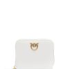 Кошелек квадратной формы с молнией по периметру из кожи наппа с косой простежкой, украшенный металлическим фирменным знаком в виде влюбленных ласточек Love Birds с гальваническим покрытием «античное золото». Внутри кошелек обшит микрофиброй.